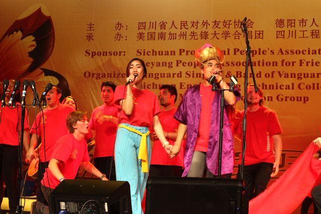 5月23晚,2013中美大学生联欢晚会在我院二教演艺厅举行。美国南加州先锋大学合唱团带来了《Courageous》 《My Heart Will Go on》《This I Promise You》《Lion King》等精彩节目,我院学生艺术团也表演了民歌联唱、民族舞蹈。师生们在流畅的乐曲和热情的节目互动中共享激情与活力,体验了多元的文化与交流。经典的音乐节目演奏,充满活力、个性张扬的演员,执着敬业的团队精神,给广大学子留下了深刻的印象。