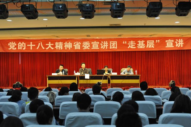 据悉,学习贯彻党的十八大精神省委宣讲团“走基层”宣讲活动是省委进一步面向基层宣传党的十八大精神,持续兴起学习贯彻十八大精神热潮的重要举措之一。
