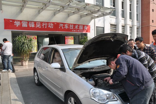 今年的3月5日是毛泽东“向雷锋同志学习” 题词发表五十周年纪念日,为了传承雷锋精神,建设文明和谐校园,车辆工程系党总支组织党员志愿者,利用自身优势,热情为学院教职工开展现场服务,活动项目包括现场对汽车进行专业检查、教授如何使用随车工具更换轮胎、解答汽车保险理赔疑问等,受到在场师生的一致赞誉。