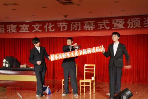 闭幕式上,学生处副处长廖秀勇致闭幕辞,对本届寝室文化节给予了充分肯定。领导和嘉宾为113个特色文明寝室授牌,为本届寝室文化节综合测评优秀宿舍和先进个人颁发了荣誉证书。校宿管会和各学生公寓还将精心准备的艺术再现宿舍生活的歌舞表演、魔术和相声小品呈现给各位观众。