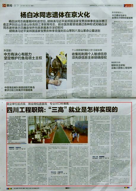 1月22日,《四川日报》发表专题文章《四川工程职院:“三高”就业是怎样实现的》,从“前瞻预判 快速反应”、“校企合作 共建共享”、“四位一体 搭建网络”三个方面详细介绍了学校“三高”就业实现的路径和举措,体现出了学校抓就业工作的“快”、“共”、“和”。