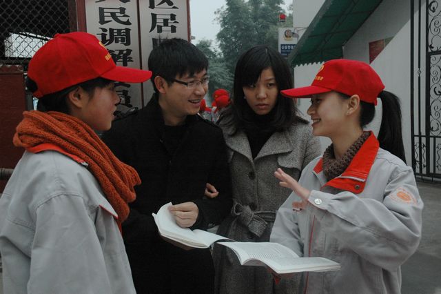 志愿者们受到了社区负责人的热烈欢迎,他向师生们介绍了社区的基本情况,同时表示,社区居民对党的十八大胜利召开给予了密切关注,本次活动将有利于居民更深入地学习领会十八大的精神实质和深刻内涵。随后,志愿者们走进沿街店铺和居民家中分发宣传资料,并耐心与居民交谈,结合自己的学习体会讲解十八大精神,内容涉及教育、养老、和医疗保障等。居民们反响热烈,纷纷聚拢过来与同学们谈生活、谈希望。