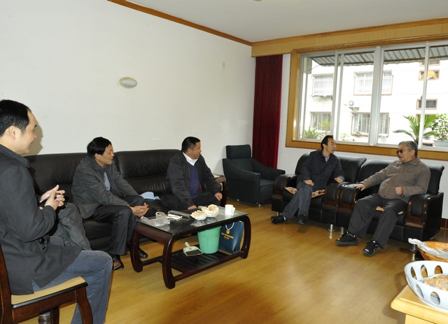 2012年11月9日上午,党委书记司徒渝与新任院长李登万专程看望退休老书记、老校长侯文卿,向他汇报党政班子的近期工作规划,并陪同参观学校新近竣工的两校区下穿隧道和南校区建设工地。侯校长寄语新搭建的党政班子,希望以司徒书记为班长的院党委能紧密协作,以积极主动的态度和扎实的工作作风做好工作,齐心协力迎接征程上的未知挑战,不断推进学院各项事业的改革和发展。他表示对党政班子充满信心,一定能开创学院更美好的未来。 司徒渝书记、李登万院长、赵小培副院长陪同侯校长参观南区焊接实训中心 三任校长于集翠园留影