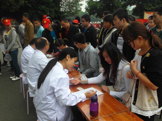 。10月20日上午8:30,由四川工程职业技术学院主办,德阳市中心血站和我校电气信息工程系团总支承办的大型公益献血活动在旧篮球场举行。此次献血活动的主题为“生命工程”。活动前期,电气系团总支做了大力宣传,活动吸引了广大师生的热情参与。在电气系团总支及青年志愿者的热情服务下,献血工作有条不紊。据现场采访了解到,大多数同学都是第一次献血,他们表示很乐意奉献自己的爱心,为社会公益事业贡献自己的青春热血。据统计,现场共有超过240人献血,血量共计逾7万毫升,约25个成年人身体的全部血液。