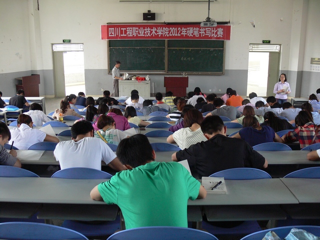 5月28日14:30,在3教207教室举行的2012年四川工程职业技术学院硬笔书写比赛决赛圆满结束。 全院共有22个班级约700余人参加了本次比赛预赛。经基础部语文教研室认真筛选,最终确定一百五十名学生参加现场决赛。最后,一等奖由建筑系的杨光、材料系罗思等十名同学获得。本次比赛另设有二、三等奖和优胜奖若干。 本次比赛由学院教务处主办,基础部承办,基础部语文教研室具体组织实施。活动的目的旨在提高书写审美能力,增强硬笔书写意识,规范汉字书写,丰富大学生课余生活。