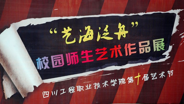 艺术节期间,“艺海泛舟”校园师生艺术作品展在图书馆一楼大厅展出。本次共有80余件书画、绘画、艺术设计等作品参展,最终,艺术系2010级艺术设计1班张利益的《油画风景》、艺术系2010级服装设计1班杨聪的《魅惑》获得艺海泛舟绘画作品一等奖,计科系2009级计算机应用1班雷本刚获得书法作品一等奖。 . .