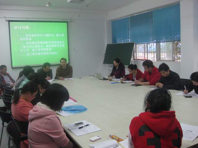 系党总支杨俊华书记从校园艺术节、学生工作近期状况总结、下一步工作目标三方面做了重要讲话。会议第一部分围绕“如何带好学生干部,建立优秀班集体”展开讨论。杨书记首先向老师们分享了如何培养学生干部的心得,一是学生干部首先要当好学生,抓好学习仍然是重点任务;二是要培养学习干部团结、责任、服务的意识,以及应对突发事件的能力。三是要激励学生干部在服务同学的同时要不断学习、成长自我。会议第二部分围绕“如何通过掌握高职学生特别是大一新生的心理特点,做好困难学生帮扶工作,建立优秀班集体”展开讨论。班级导师殷佳琳老师结合自身对大学生心理成长的长期性研究,提出要特别注重大学生心理健康发展,教师要做好学生心理引导,从正面鼓励学生,及时反馈表扬学生,给学生树立“最近发展区”。会议最后围绕“建立教育教学团队的建议”展开大讨论,各教研室主任和各班辅导员结合自身从教经历和典型学生个案展开激烈讨论。会议最后,杨书记总结发言并提出要从寝室文化和学生成绩入手来建立优秀班集体。