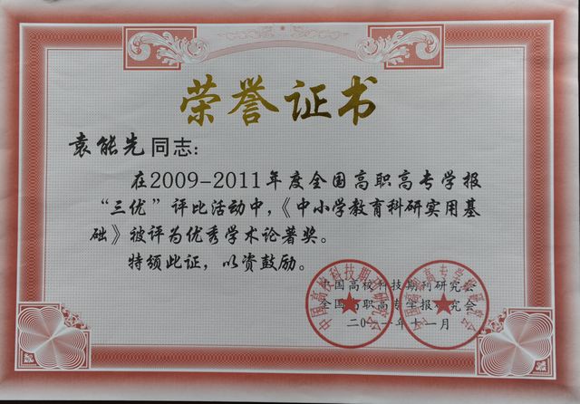 我院学报积极参加本次评奖活动,以优异成绩获得一等奖,这是我院学报继2008年在武汉会议“三优”评比获得一等奖后再次获得该项荣誉。我院学报编辑部主任袁能先老师专著《中小学教育科研实用基础》获“优秀学术专著奖”。