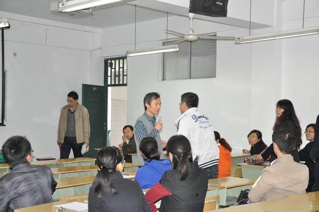 随后,杨跃教授和老师们交流了“如何上好一堂课”、“什么是课堂的美”、“如何让学生上课是一种美的享受”。他告诉青年教师,上课最首要的是让学生听懂了、学会了,这是美的基础;然而,教学不仅传授知识,更要在课堂上把育人贯穿始终,通过教学传授思想、启迪人生,让学生在得到启发的基础上产生创新的冲动和实践——这就是“课堂的美”。对于杨教授的倾心交流,老师们报以热烈的掌声。
