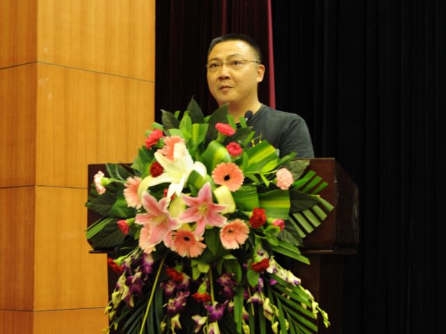 司徒渝院长在会上讲话,他首先代表学院党委和行政,向全体教职工,各位离退休老领导、老教师、老同志致以节日的问候和崇高的敬意,向荣获学院先进集体、优秀教师、优秀教育工作者、优秀辅导员(班主任)和2011年“永好教师教育教学质量奖”的集体和个人,向获得“第六届高等学院教学名师奖”和“第五届四川省高校教学名师”称号的个人表示热烈的祝贺。