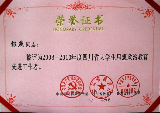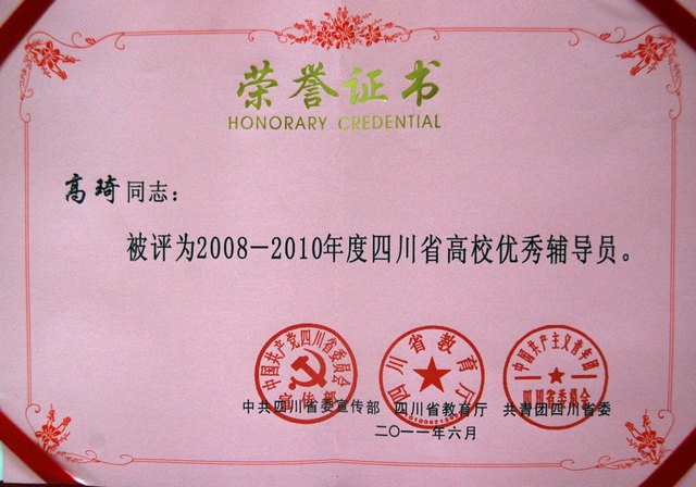近日,学院收到《中共四川省委宣传部、四川省教育厅、共青团四川省委关于公布2008-2010年度四川省大学生思想政治教育先进集体和先进工作者评选结果的通知》( 川教[2011]87号),《通知》指出,为进一步激励高校及各部门更加重视和支持大学生思想政治教育工作,激发大学生思想政治教育工作者的积极性和创造性,推动全省大学生思想政治教育工作再上新台阶,中共四川省委宣传部、四川省教育厅、共青团四川省委开展了2008-2010年度四川省大学生思想政治教育先进集体和先进工作者评选活动。我院机电工程系党总支荣获“四川省大学生思想政治教育先进集体”称号;思政部银燕老师荣获“四川省大学生思想政治教育先进工作者”称号;电气系高琦老师荣获“四川省高校优秀辅导员”称号。 .
