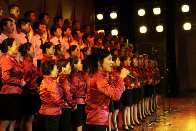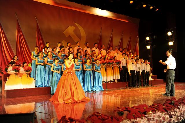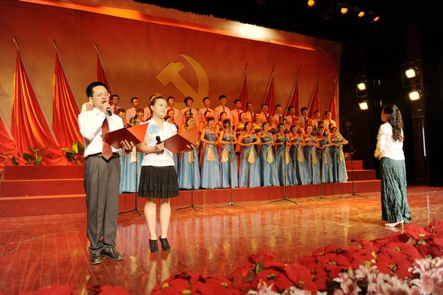 “九十年历经沧桑,风云激荡;九十年英雄辈出,谱写华章。今日,让我们乘着歌声的翅膀,让历史的今天神采飞扬;今日,让我们用燃烧的青春,让脚下的热土凯歌嘹亮!”伴随着两位主持人的激情解说,2011年6月28日,学院“永远跟党走”庆祝建党90周年大型红歌合唱比赛在二教演艺厅拉开帷幕。一个半小时里,演播厅内歌声嘹亮,掌声、欢呼声不断。学院领导司徒渝、吴烈、张斌、贺文佳、赵小培、李登万、杨跃、徐诗勤、倪波、何勤等与全院师生代表一同观看了演出。