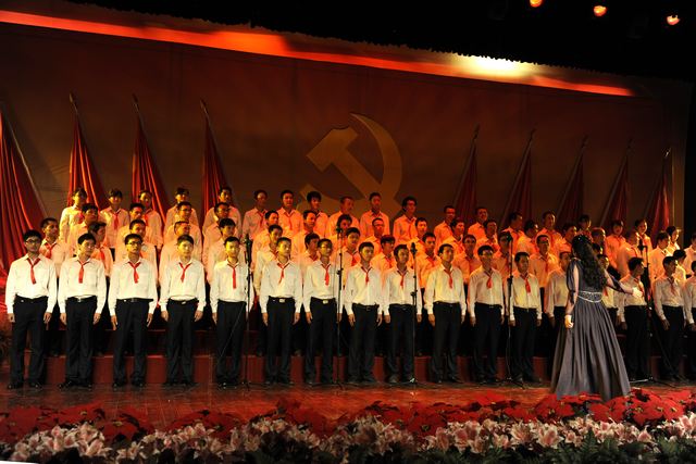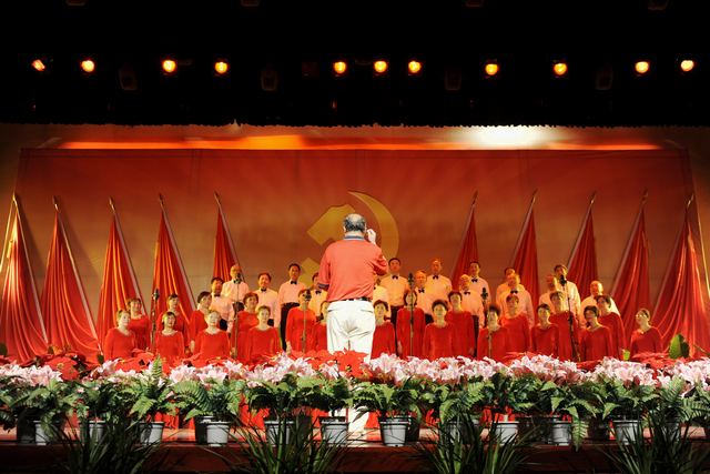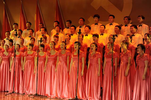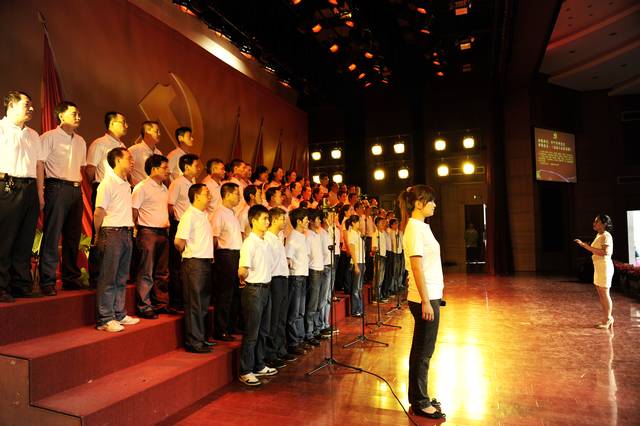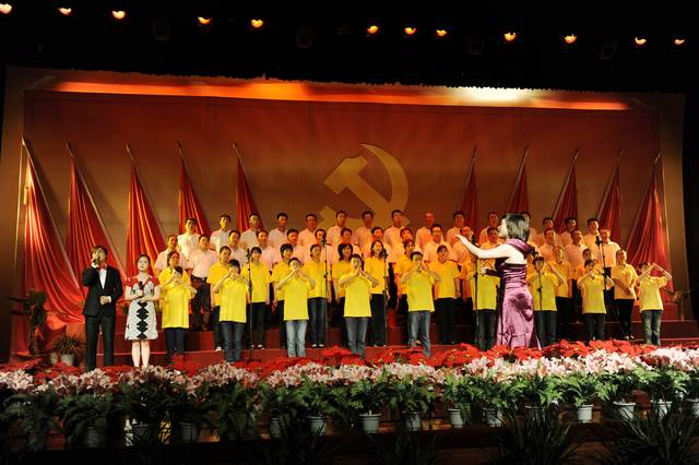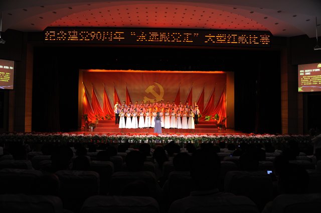 最后,全场师生起立,一同高唱《没有共产党就没有新中国》,奏响了当晚唱响红歌、永远跟党走的最强音。