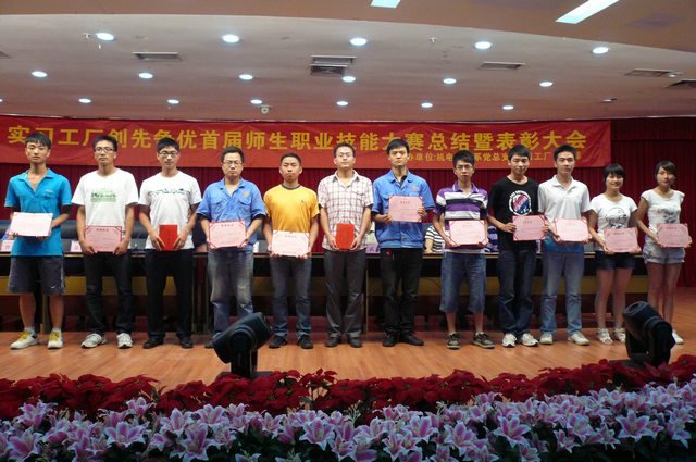 会上,实习工厂厂长助理周奎对本次大赛做全面总结。实习工厂厂长曾祥录在讲话中指出,此次技能大赛是实习工厂和机电工程系首次合作开展,希望以后能够继续合作,继续开展此类技能比赛,为同学们提高自己的实际动手能提供平台。机电工程系主任武友德强调,此次技能大赛是机电工程系教工第一党支部、学生第一党支部联合实习工厂党支部深入开展创先争优活动的一项重要内容,更是学院深化“1221”人才培养模式的一次具体举措,希望同学们能够以此为契机,强化专业理论知识的学习,加强实际动手操作能力的提高。