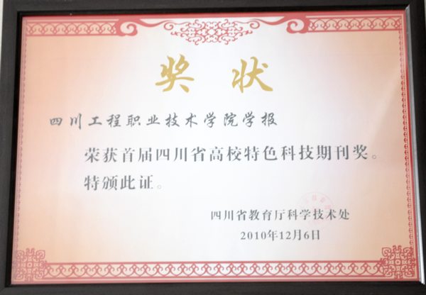 近日,在四川省教育厅科技处、四川省高校学报研究会联合举办的四川省首届高校科技期刊评比中,我院《学报》荣获首届“四川省高校特色科技期刊”称号。这是我院《学报》在2008年全国高职高专三优评比荣获一等奖和2010年四川省高等学校文科学报研究会期刊评优活动中被评为“特色栏目”之后再次获得的又一项重要的荣誉称号。