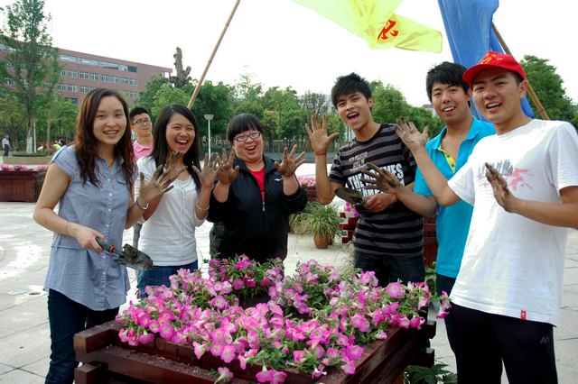 活动中,同学们精神饱满,他们与园林专业教师一道在第五教学楼绿化带挖土打窝,共同种下了近千盆花,为学院增添了色彩,打造出了色彩绚烂的园林风景。