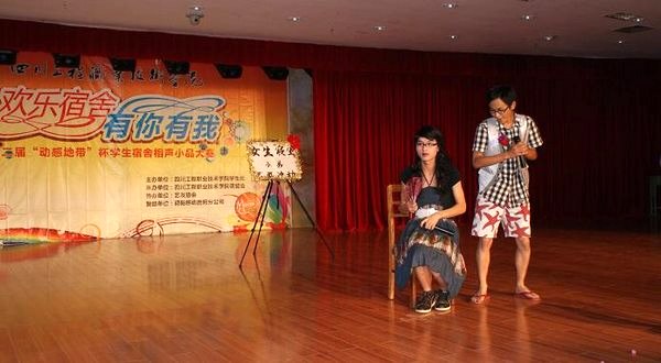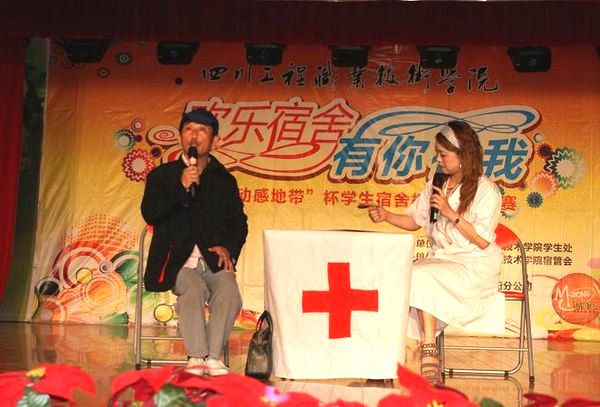经过一个多月的初赛、复赛,最终从各学生宿舍、系部和协会选送的30余个节目中评选出6个参与今晚的决赛,为观众奉献了近两个小时的欢乐与感动,博得了观众的阵阵喝彩。最终,由11舍和5舍联合推出的《女生宿舍门口》凭借其鲜明的风格和精湛的表演,在众多节目中脱颖而出,夺得比赛第一名。德阳市曲艺家协会主席陈实先生(艺名:斗鸡娃)友情表演的小品《普通话听不懂》更是为整台晚会增色不少。最后,宿管老师与学生共同演绎的民族歌舞《草原上升起不落的太阳》为整个大赛划上了圆满的句号。