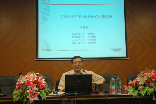 2011年 4月26日下午,在我院交流访问的德国亚琛工业大学资深博导马德新教授给材料工程系的师生们举行了一场关于“高温合金定向凝固技术新发展”的精彩学术报告。在报告中,马德新教授以其详实的数据、严密的分析阐述了多年来高温合金定向凝固技术的发展历史,指出了未来大尺寸单晶叶片生产的关键技术难题,开拓了师生们的专业视野。马德新教授还给学生们介绍了德国高等教育体制,并结合自身求学历程激励同学们珍惜大学的美好时光,刻苦学习,为将来走向社会积累过硬本领与技能。