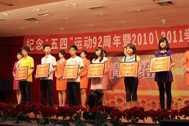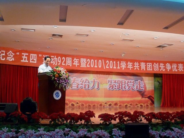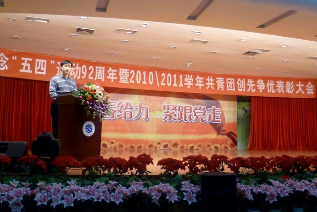 5月3日下午4:30,学院纪念“五四”运动九十二周年暨2010/2011学年共青团创先争优表彰大会在新图书馆多功能厅隆重举行。学院党委副书记张斌,党委学工部、学生处、团委和各系部负责人,以及全院团员、学生代表300余人参加了大会。学院学工部部长助理邱黎明主持会议。