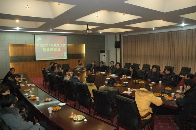 2011年1月12日,学院2011年统战工作新春座谈会在技术中心会议室召开,学院院领导、各民主党派代表、人大代表、政协委员、少数民族代表、侨眷代表、无党派人士代表等30余人欢聚一堂,共庆新春佳节。