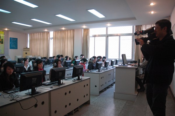 摄制小组还深入到学院数控、焊接、汽车实训中心记录双师授课法下的教学讨论环节,随机采访了部分学生和正在校招聘的用人单位——泸东中华造船集团有限公司的企业代表,并来到学院语音室、电气单片机实验室、东汽技能鉴定会场、外教教学现场进行了采访和摄录。