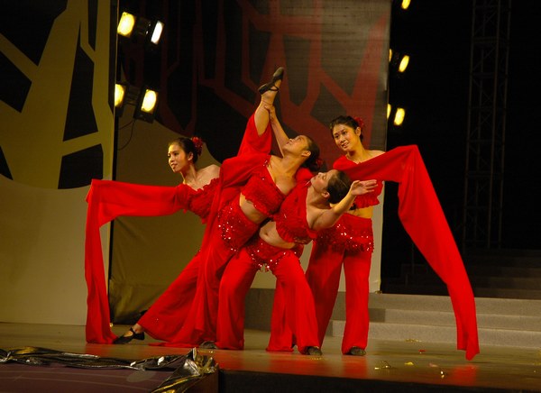 由艺术系唐晋、谢晓梅等表演的参赛舞蹈《映山红》