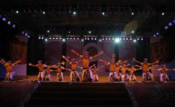 由机电系廖昌华、何飞等表演的参赛节目《狼图腾》