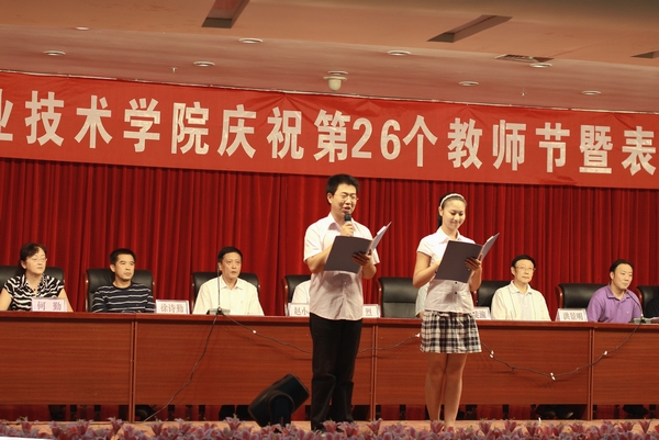 2010年9月10日下午4:40,学院庆祝第26个教师节暨表彰大会在图书馆多功能报告厅隆重召开。学院党委委员、院领导与300余名教职工代表一同出席了大会。大会由贺文佳副院长主持。