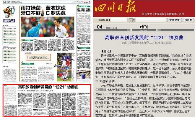 “2010年毕业季来临,应届生大量涌出校门,忙于求职,而位于德阳市的四川工程职业技术学院却显得很平静。‘几个月前,我们毕业生大多就到企业带薪顶岗实习了。’就业指导办公室彭主任介绍道,‘目前签约率已超过94%,预计今年就业率仍将超过98%。’如此出众的成绩,在这所国家级示范高职院校已是习以为常的事。”2010年6月16日,四川日报上一篇名为《高职教育创新发展的“1221”协奏曲》的文章这样描述到,“出口畅带来了入口旺,而生源质量的提高也有助于人才质量的提高……‘我们培养的不是一般工人,而是高素质高技术紧缺人才。除了懂技术,还要懂理论、会电脑、会英语、会协作。新时代、新产业,需要新人才。’”