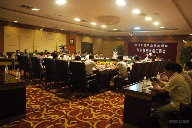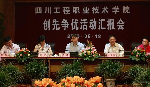 随后,陈希副部长一行来到学院图书馆108会议室,听取了学院创先争优工作汇报。学院创先争优汇报会由四川省委教育工委书记、四川省教育厅厅长涂文涛主持。