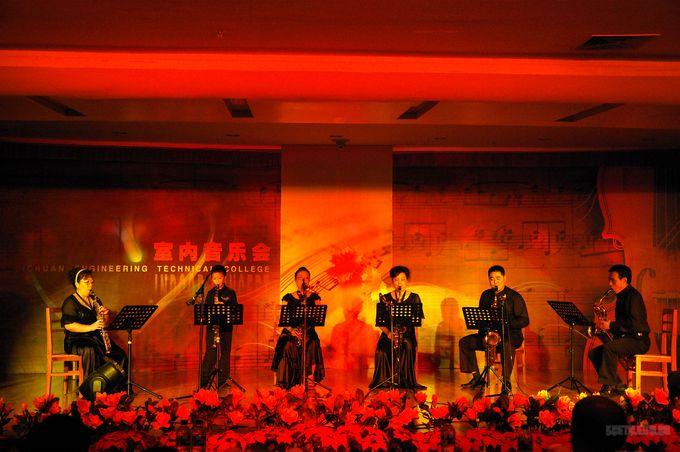 四川爱乐乐团弦乐四重奏,德阳海宾铜管乐队、老疙瘩乐队,德阳文化馆哈哈哈四重唱等省市专业乐团和表演队伍应邀前来,为观众带来了《莫扎特小夜曲》、《造型步态舞》、《梅菲斯特圆舞曲》、《卡门序曲》、《拉德斯基进行曲》等多首经典曲目。德阳市委书记方小方,市委常委、副市长陈行祝,市人大常委会副主任张法祥,市政协副主席曾庆扬等也来到师生中,方小方书记的萨克斯演奏,张发祥副主任与学院教工子弟的书法古筝表演等,以其精湛技艺和热情表演赢得了热烈的掌声。