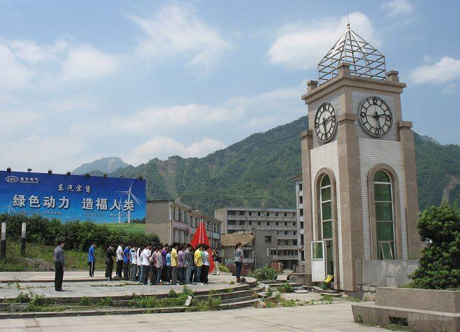 同学们在汉旺钟楼遗址举行默哀仪式,深切缅怀在大地震中不幸罹难的同胞和为取得抗震救灾的阶段性胜利而英勇牺牲的烈士们。之后,同学们来到汉旺新镇,这里群众乐观的精神面貌,让大家深深感受到了灾区人民对新家园和新生活的热爱。