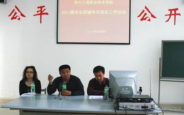 2010年5月4日下午4:30,学院2011届毕业班辅导员(班主任)就业工作培训会在旧图书馆一楼举行。学院副院长李登万到会并讲话,就业办主任彭拯作培训报告。培训会由学生处副处长李秀平主持。 李登万副院长在讲话中指出,一定要按照学院的要求认真扎实地做好2011届毕业生就业工作,要认清办学形势、办学背景,把行为规范和职业道德放在首位。要充分认识做好毕业生就业工作的重要性,辅导员、班主任在把握整体导向的同时,更要注重个体,让每个学生充分认识就业形势,建立正确的价值取向、人生观和就业观,切不可只顾眼前利益,过分挑剔,最终就业失败。 就业办主任彭拯分析了当前大学生就业形势及往届毕业生就业时所产生的“就业观念不开放”、“职业理想不明晰”、“过于依赖学校就业”等问题,阐明了就业辅导工作的途径方法:一是坚持领导挂帅,明确职责;二是坚持就业导向,落实就业指导;三是坚持开拓市场,落实就业基地建设;四是坚持双向服务,落实就业安全稳定;五是坚持推荐原则,促进学生充分择业。最后彭主任向辅导员(班主任)提出了五点希望和要求:一是从思想上提高认识,增强使命感和责任心;二是加强学习,了解各方面就业指导知识;三是对学生进行求职方法和技巧训练;四是针对学生求职过程中的心理压力进行辅导;五是树立全程化的就业观念。 本次培训会是为进一步提高我院2011届毕业班辅导员(班主任)就业指导能力,更好地做好毕业生就业工作而召开的。培训会于下午6:00结束,2011届30余名辅导员(班主任)参加了会议。
