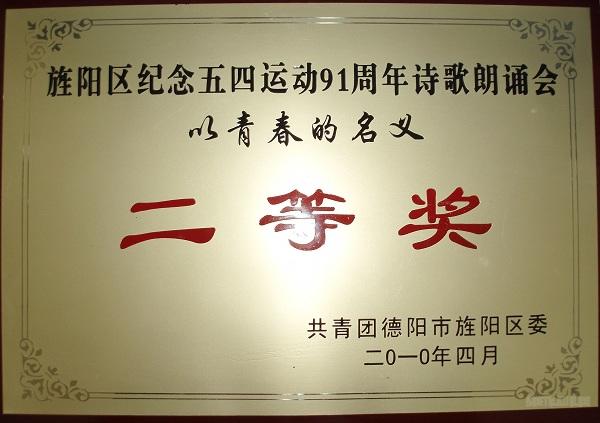 近日,我院在旌阳区纪念“五四”运动91周年暨“我们的节日”系列活动中,分别荣获演讲比赛一等奖和诗歌朗诵比赛二等奖。此次比赛于4月30日举行,是共青团德阳市旌阳区委在中国共青团成立88周年,五四运动91周年之际开展的纪念活动,旨在通过这本次活动动员和引导广大团员青年以勤于学习、善于创造、甘于奉献的实际行动庆祝自己的生日。