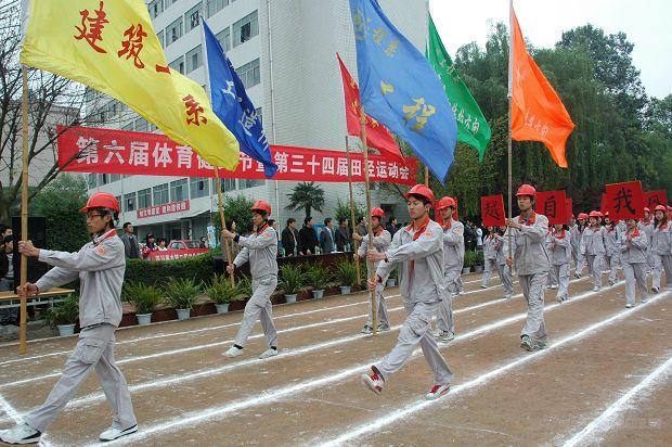 2010年4月15日,我院第六届体育健身节暨第三十四届田径运动会开幕式在足球场隆重举行。学院副院长贺文佳、杨跃、徐诗勤,学生处、团委、体育部等相关部门负责人,各系党总支书记和全院学生一起参加了开幕式。