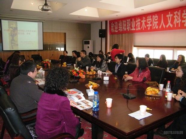 . 绵阳职业技术学院人文科学系主任携基础英语、应用英语专业教研室主任等一行于4月15日上午来我院进行参观交流,我院外语系接待来访客人并召开了座谈会。 绵阳职业技术学院人文科学系同行此行主要目的是来我院进行教学交流与参观,积累外语类专业示范建设和精品课程建设经验。除交流座谈外,绵阳职业技术学院人文科学系陈主任一行还重点参观了学院教学实训场所、新图书馆,并与我院外语系教师进行了深入的交流。