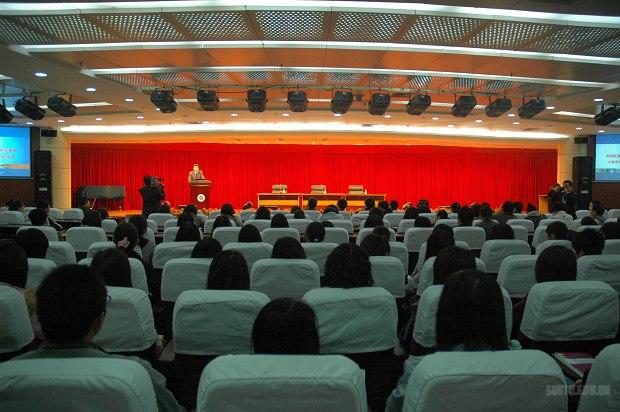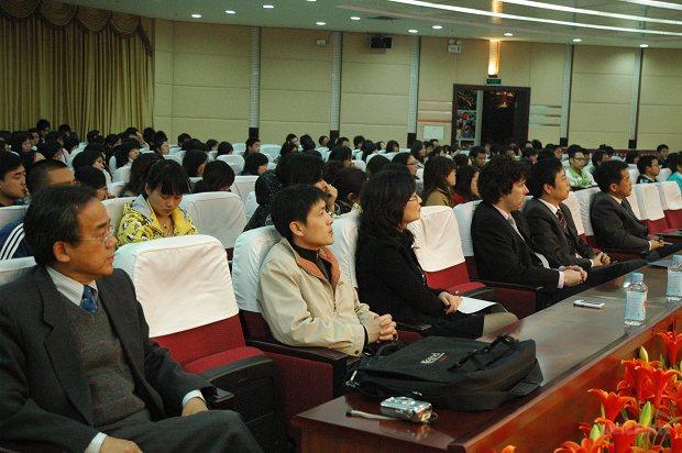 上午10:00,学院图书馆学术报告厅内座无虚席,来自全市的教师代表和我院外语系的同学们用热烈的掌声迎来了大维布朗先生一行。我院徐诗勤副院长致欢迎词,大维布朗先生做了题为《中美关系30年》的精彩演讲。