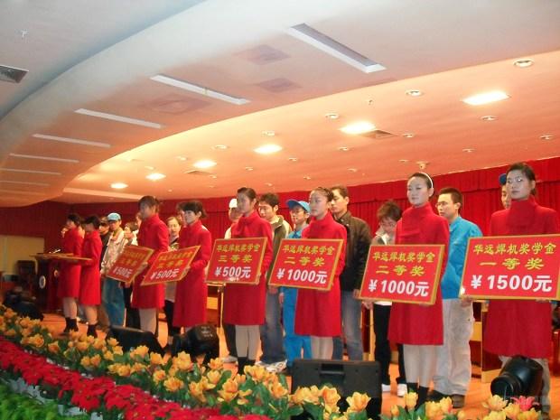 2009年12月23日16:30,电气系、材料系2008/2009学年表彰大会暨“华远焊机奖学金”颁奖仪式在在新图书馆三楼会议厅隆重举行。学院副院长贺文佳,成都电器有限公司董事长袁荣勤、质检部长何勇出席大会。学院学生处、电气系、材料系等部门负责人,以及获得“校友奖学金”、“华远焊机奖学金”和“三好学生”、“优秀学生干部”、“学生标兵”、“先进班级”、“优胜班级”、“单项积极分子”称号的集体和个人代表共300人参加了表彰大会。大会由学生处副处长廖秀勇主持。
