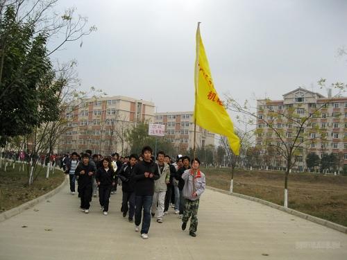 2009年12月29日 16:30分,学院“奔向2010”冬季长跑活动在足球场拉开帷幕。 当日,参加活动的各系学生代表在老师的组织下,身着整齐的校服,排着整齐的队伍,在校园内进行了长跑活动。长长的队伍在冬日暖阳下欢快地盘旋在校园中,同学们个个神采奕奕,飘扬的彩旗、响亮的口号、整齐的步伐无不展现了当代大学生的青春朝气与活力。 本次活动是为了增强同学们对于体育锻炼的重视,培养同学们的集体荣誉感和责任心而开展的。