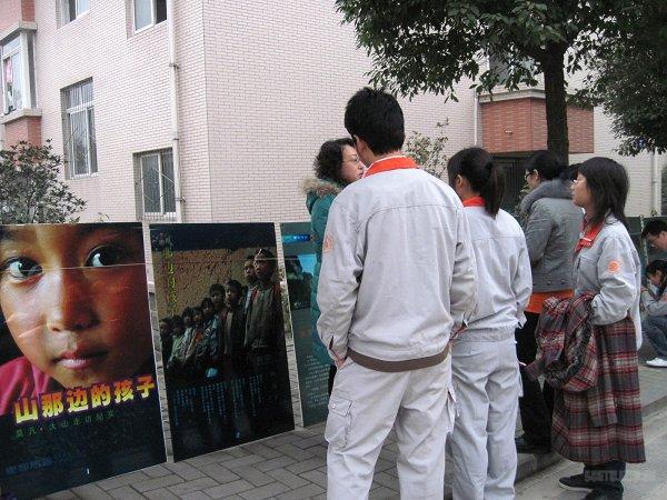 同日,根据“中国·麦田计划”,学院团委与“中国·麦田计划”合作,在校园林荫道举行了《山那边的孩子》图片展,并设置“麦田计划”志愿者报名点。许多同学报名参加,场面感人。