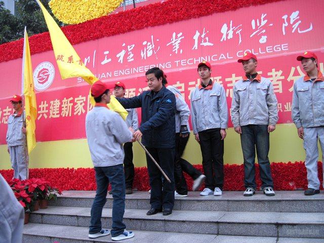 2009年12月6日上午9时,以“争做志愿者、 共建新家园”为主题的活动启动暨志愿者分队授旗仪式在三教东门前顺利举行。共青团德阳市委副书记王涛,学院团委书记卢敏、邱黎明老师、牛丽丽老师、刘艳老师,各系团总支书记和我院500余名学生志愿者代表参加了启动仪式。活动由团委邱黎明老师主持。