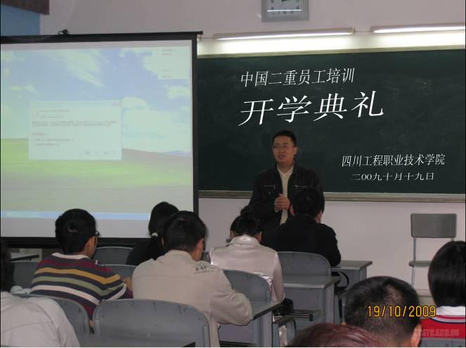 2009年10月19日下午,我院为中国二重举办的在职员工机械基础知识培训班在二重职工培训基地举行了隆重的开学典礼。我院机电系副主任朱超,二重人力资源部培训科杨科长在开学典礼上作动员报告。 机电系副主任朱超在开学典礼上讲话 二重人力资源部培训科杨科长在开学典礼上讲话