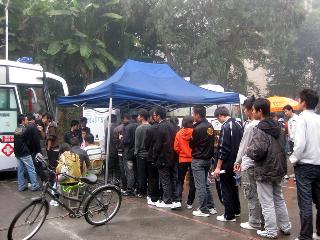 10月25日,电气系在旧篮球场举行了大型无偿献血活动。虽然天公不作美,活动开始就下起了绵绵细雨,但这并没有减弱同学们的热情,各个献血点都排起了长长的队伍。活动期间,系团总支组织各部门干事及青年志愿者积极维持秩序,为献血者提供服务。此次献血活动,不仅及时缓解了德阳市中心血站血源紧张的局面,也充分表达了同学们积极参与社会公益事业的热情,更为促进我院文明建设工作和构建和谐社会做出了贡献。
