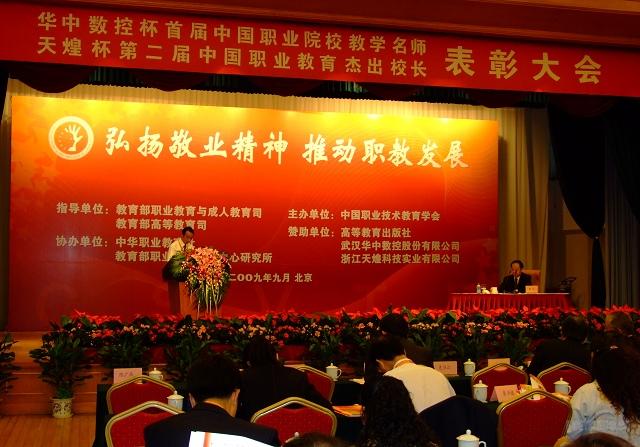 经教育部批准,2009年9月13日上午,中国职业技术教育学会主办的“华中数控杯首届中国职业院校教学名师和天煌杯第二届中国职业教育杰出校长表彰大会”在北京举行,全国人大常委会副委员长陈至立、国家教育部副部长鲁昕等国家领导人和教育部领导同志出席大会并为获奖代表颁奖。