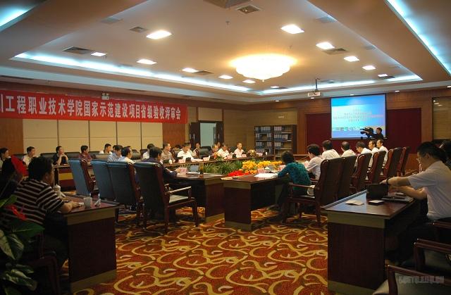 2009年9月22日14:00,学院国家级示范建设项目省级验收评审会在图书馆108会议室成功召开。学院上级主管部门领导,省级验收评审组专家,部分兄弟院校领导和学院全体院领导、各系主任和相关部门负责人等出席了本次评审会。四川省教育厅高教处处长周雪峰主持会议。