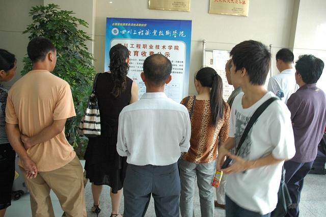 教育收费公示栏前。图为家长和学生通过教育收费公示栏了解学院收费情况。