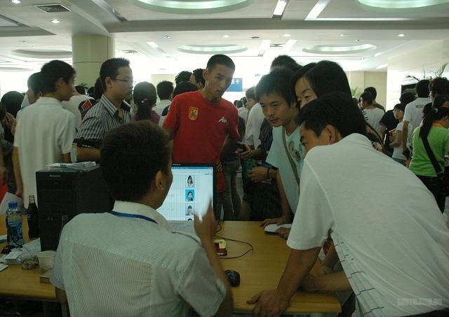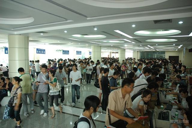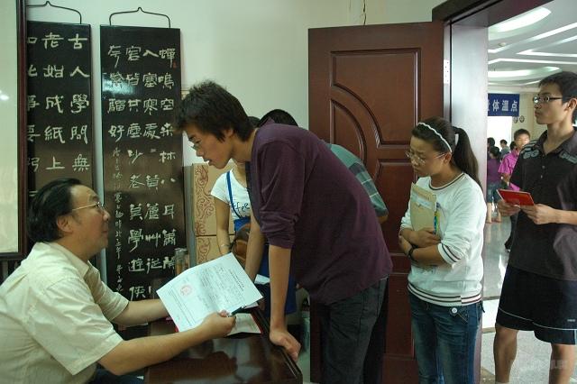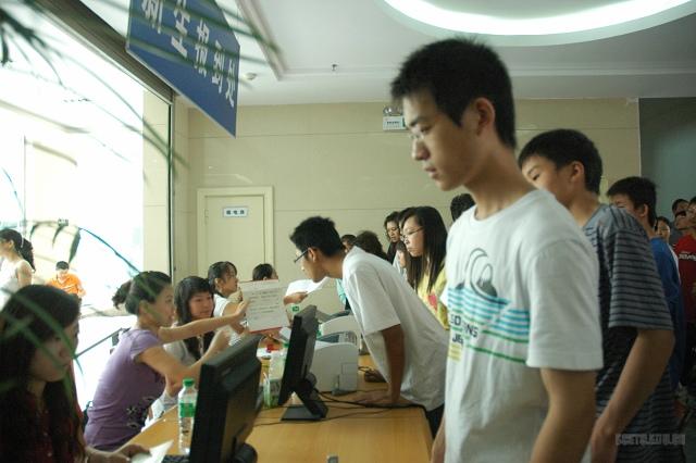 井然有序。图为新生报到处,招生办的工作人员在为新同学办理报到手续。