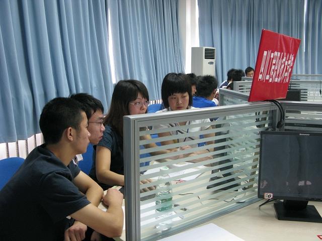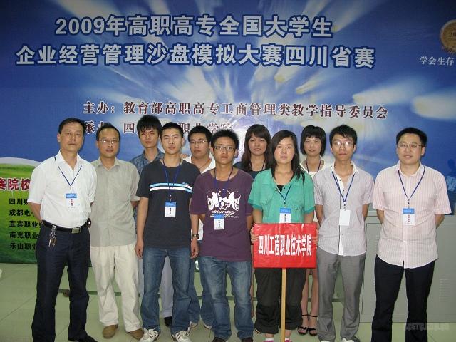 由教育部高等学校高职高专工商管理类专业教学指导委员会组织的“2009年全国高职高专大学生企业经营管理沙盘模拟大赛”四川省赛于2009年6月13日在成都成功举行。我院经管系派出代表队参加了此次比赛。在比赛中,面对18支对手代表队带来的竞争压力,我院选手沉着迎战,经过6小时的对抗厮杀,不断击败对手,最终获得胜利,比赛成绩排名第三,喜获四川省赛区二等奖,为学校争得了荣誉。 我院经管系代表队 紧张比赛中