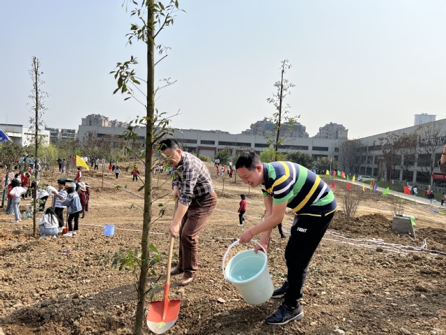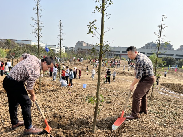 2022年3月12日是我国第44个植树节,旅游管理系开展义务植树活动,为学校南区建设再添新绿,以实际行动绿化美化家园。