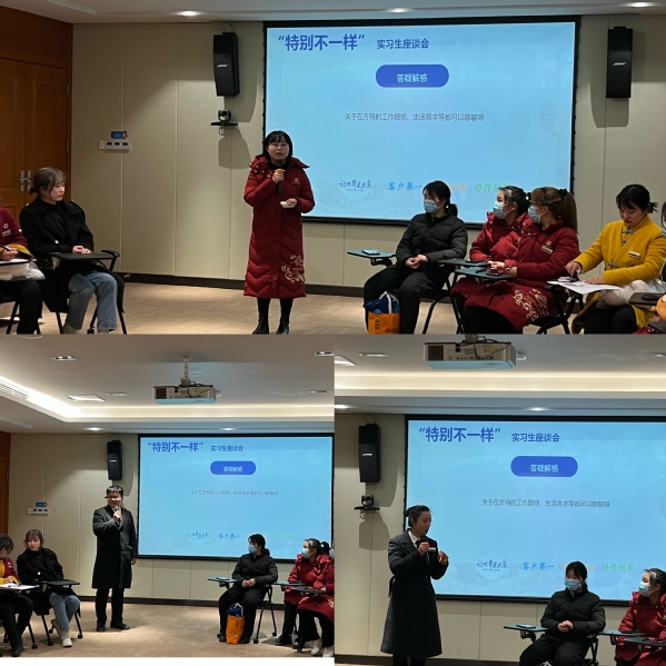 这是一场“特别不一样”的顶岗实习座谈会。校方顶岗实习主要负责老师、企业方部门关键领导以及顶岗实习的全体学生参加了座谈会。首先企业方各部门领导对我系实习生的工作表现给予了高度评价,给我系学生贴上了“专业扎实”“吃苦耐劳”“遵守纪律”的标签,同时感谢了学校对学生的培养和输送。同学们看到老师们非常激动和高兴,一系列互动环节中,他们开心分享了这一个月自己从心态上、角色上的转变以及在工作岗位上的收获,言语中透露出的是“我在这里挺好的”。